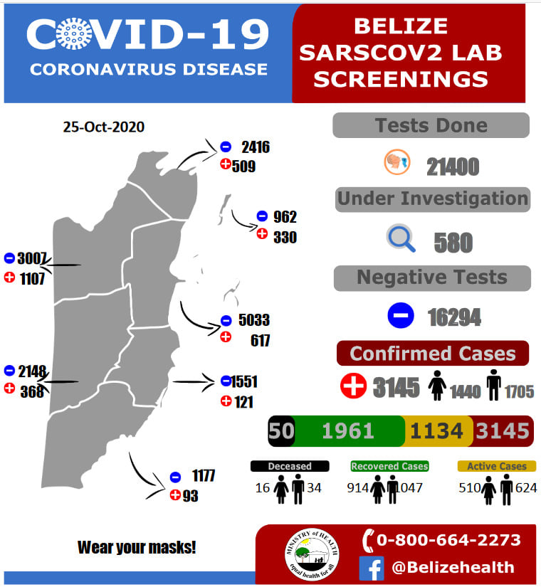 The National Oversight Committee (NOC) met this morning for its weekly consideration of Belize’s COVID-19 situation. The NOC took special note of Director of Health Services (DHS) Dr. Marvin Manzanero’s report of October 26, 2020 and was concerned at the 332 new cases occurring over the past week. Even more alarming was the fact of six more deaths, including the first pediatric fatality.