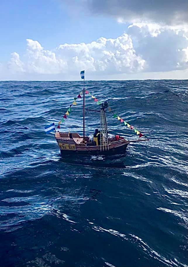 The pirate ship underwent some repairs, and days later, a cheerful family released it on the Caribbean Sea to ride predicted currents leading to Belize, Mexico, Cuba, and into the open Atlantic Ocean. A2 continues moving north-west near Turneffe Atoll. Many islanders acquainted with this project are already eager to spot A2 and help it continue its sails back to Europe.