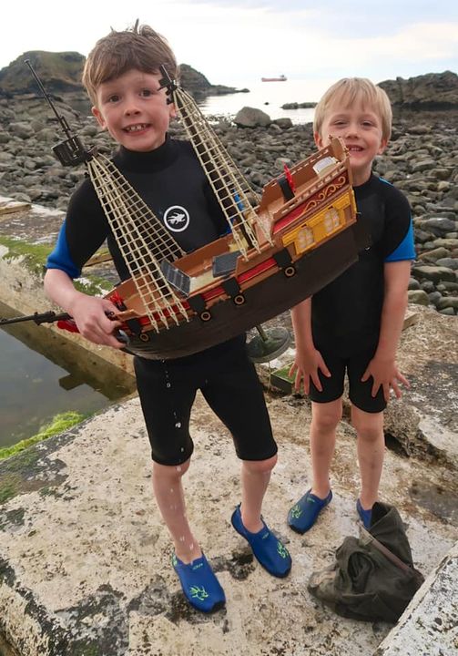 Ollie and Harry wanted to do a version of the classic sending a message in a bottle, but their parents suggested a Playmobil pirate ship instead. After building it, they launched Adventure from Peterhead, Scotland, in May 2017. It sailed to Denmark, Sweden, and Norway. As the project and boys gained popularity, the family was approached by Christian Radich, a Norwegian full-rigged ship offering to take Adventure out of the North Sea and into other waters. The toy ship underwent repairs once again and was then launched off Mauritania’s coast on the