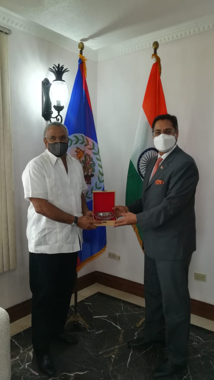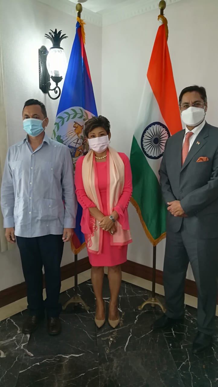 The meeting discussed areas of mutual interest on the current cooperation initiatives between the Government of Belize and the Government of India, including exploring the possibility of acquiring vaccines to support Belize’s COVID-19 Response Plan.