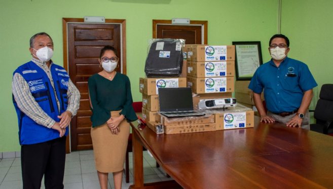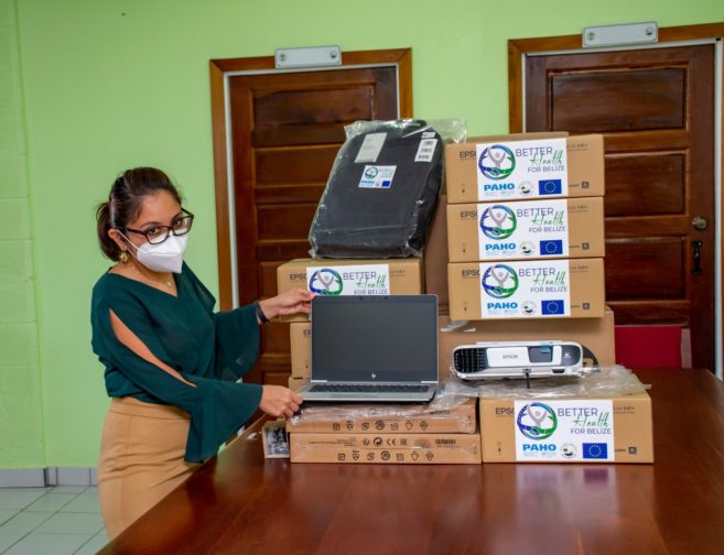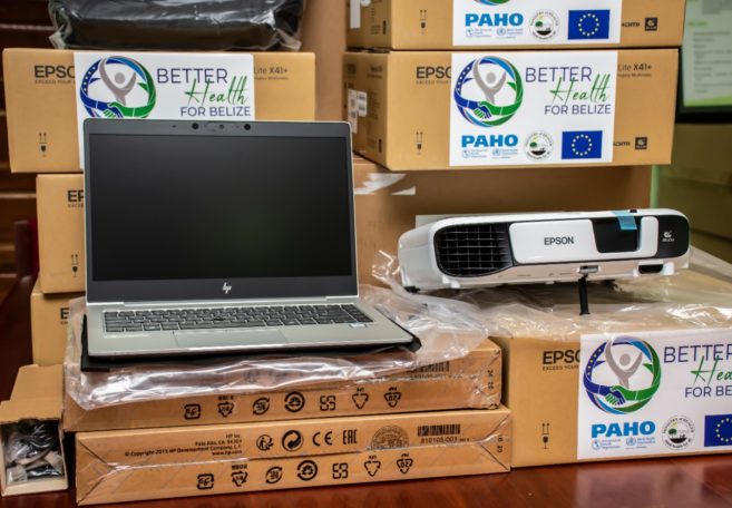 Last year, the European Union (EU) and the Pan American Health Organization/World Health Organization (PAHO/WHO) reallocated funds from the existing ‘Health Sector Support Programme Belize Project’ to assist in the country’s response to COVID-19. Through this funding, nine (9) District Health Educators from the Ministry of Health and Wellness (MoHW) will receive laptops with cases and eight (8) projectors to strengthen the ability to train health workers at the community level.