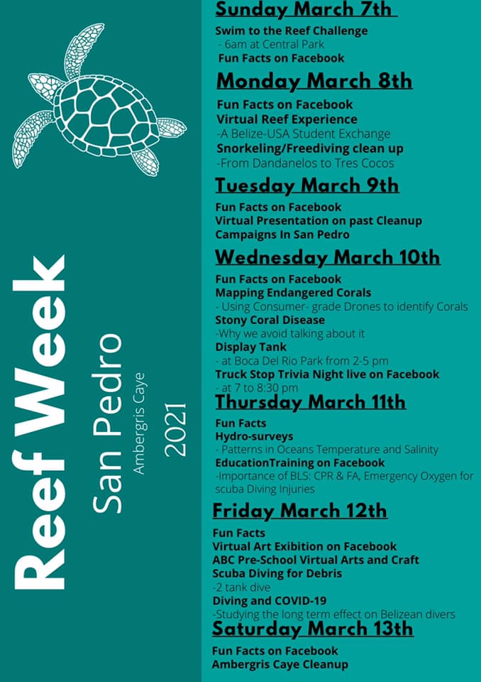 Oceana’s 2020 National Wavemaker of the Year 17-year-old islander Carina Paz organized the event. According to Paz, the upcoming activities are a collective effort from many individuals and organizations on the island. After noticing that there was a slim chance for reef week taking place in San Pedro Town this year, she rallied support from family members and the island community in a matter of days. Paz encourages everyone to support the activities that will take place throughout the week as per the schedule below.