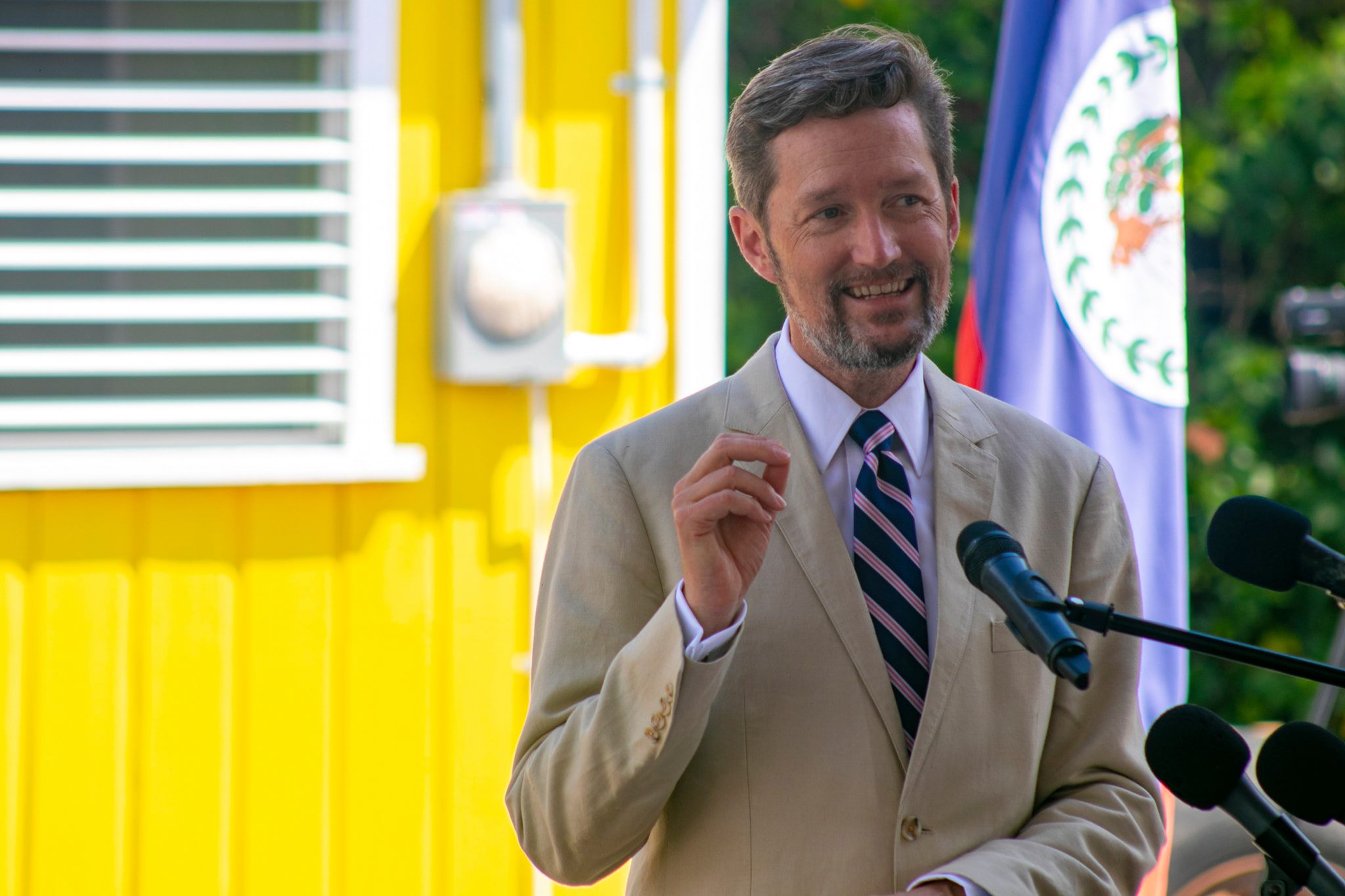 Chargé Gilges delivered the keynote address. He was accompanied by the Hon. Kareem Musa, Minister of Human Affairs and New Growth Industries, Hon. Shyne Barrow, Area Representative for the Mesopotamia Division, His Worship Bernard Wagner, Mayor of Belize City, Virgilio Murillo, Chief Executive Officer at the Kolbe Foundation, Deborah Sewell, Love Foundation Executive Director, and Francis Woods of the Kolbe Foundation.