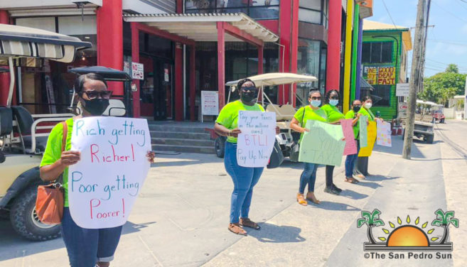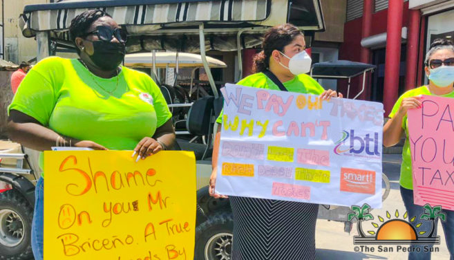 In San Pedro Town, a handful of teachers marched through the streets of downtown San Pedro and picketed BTL and SMART offices, demanding a better solution from the government other than reducing their salaries to balance the budget. Armed with placards and adhering to the COVID-19 regulations, their placards demanded that the said companies pay their taxes, which are in the millions, according to reports. Other messages illustrated their disappointment in the prime minister for pushing the salary cuts.