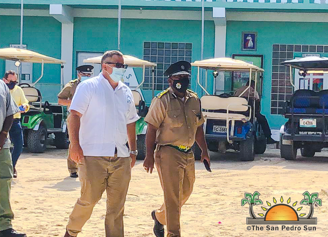 The police formations of Caye Caulker and San Pedro Town were visited by the Minister of Home Affairs and New Growth Industries, the Honourable Kareem Musa. The trip to the Cayes is part of his countrywide national familiarization tour with the different police formations and officers. Musa was accompanied by his Chief Executive Officer (CEO) Kevin Arthurs, Area Representative the Honourable Andre Perez, the Commissioner of Police Chester Williams, Assistant Commissioner of Police Dr. Richard Rosado, Superintendents Clement Cacho and Christopher Noble, including the President of the Belize Police Department, Sergeant Jermaine Hyde.