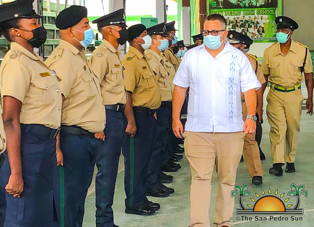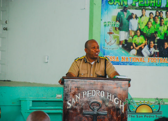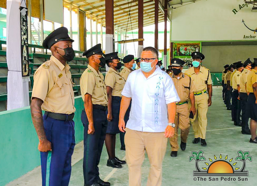 The short meeting held at the Angel Nuñez Auditorium included addresses commending the work of the island police formations. Master of Ceremonies Assistant Superintendent Basil Reyes briefed Musa on the policing done in San Pedro with their force of 85 officers. ComPol Williams commended Noble’s leadership which has significantly reduced crime on the island. Two years ago, Noble took over as the Officer in Charge of the islands; today, he is the newly created Region Four commander covering the Cayes. Williams told the officers that the security of the Cayes is critical. Their responsibility is great, and they should do their job with pride. He added that there will always be crime; thus, hard work should never stop.