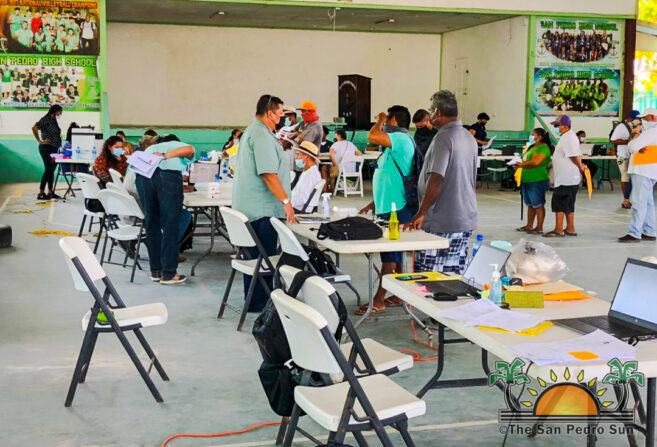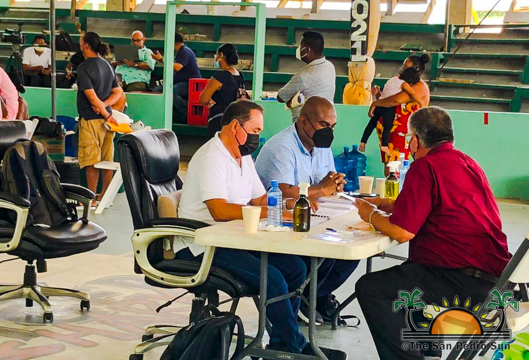 On the first day, a long line of islanders formed outside the auditorium, waiting for their turn to discuss their issue. The Minister of Natural Resources, Petroleum, and Mining, the Honourable Cordel Hyde, was on hand to provide the much-needed administrative assistance to those with questions. Area Representative the Honourable Andre Perez was also present along with members of the San Pedro Town Council.