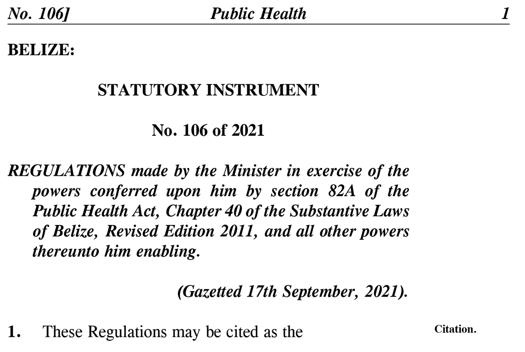 New COVID-19 regulations under the Statutory Instrument No. 106 of 2021 come into effect today, Monday, September, 20th and will be in effect for two weeks. One of the new measures is a countrywide 7PM curfew except for the main tourism destinations-Ambergris Caye, Caye Caulker, Placencia, and Hopkins. The exception will also accommodate restaurants in these destinations, allowing them to operate up to 75% of their seating capacity. At the same time, eateries across the rest of the country can only offer take-out services.