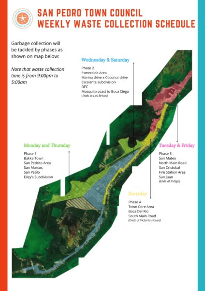 The issue with garbage in San Pedro Town has been a problem for years, and every administration at the San Pedro Town Council (SPTC) has tried their best to deal with the dilemma. To tackle this growing problem the current town council has issued new scheduled routes for ‘Waste Collection’ throughout San Pedro. The SPTC asks residents and business owners to follow the rules and regulations of their sanitation department.