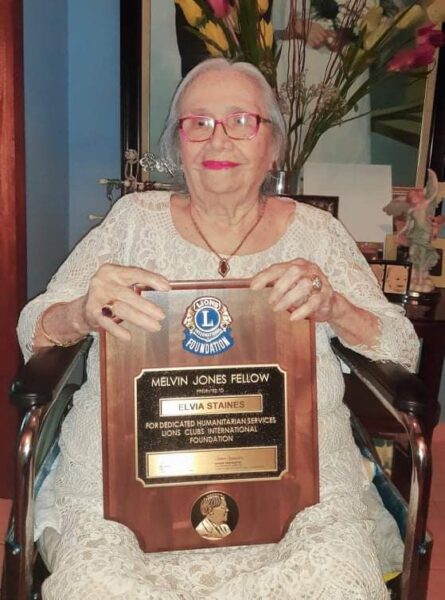 The Lions Club of San Pedro Town has presented well-known San Pedrana and Lion member Elvia Staines with the prestigious Melvin Jones Fellow/Award. The award is named after Melvin Jones, founder of the international organization, recognizes outstanding individuals and embodies humanitarian ideas consistent with the nature and purpose of Lionism.