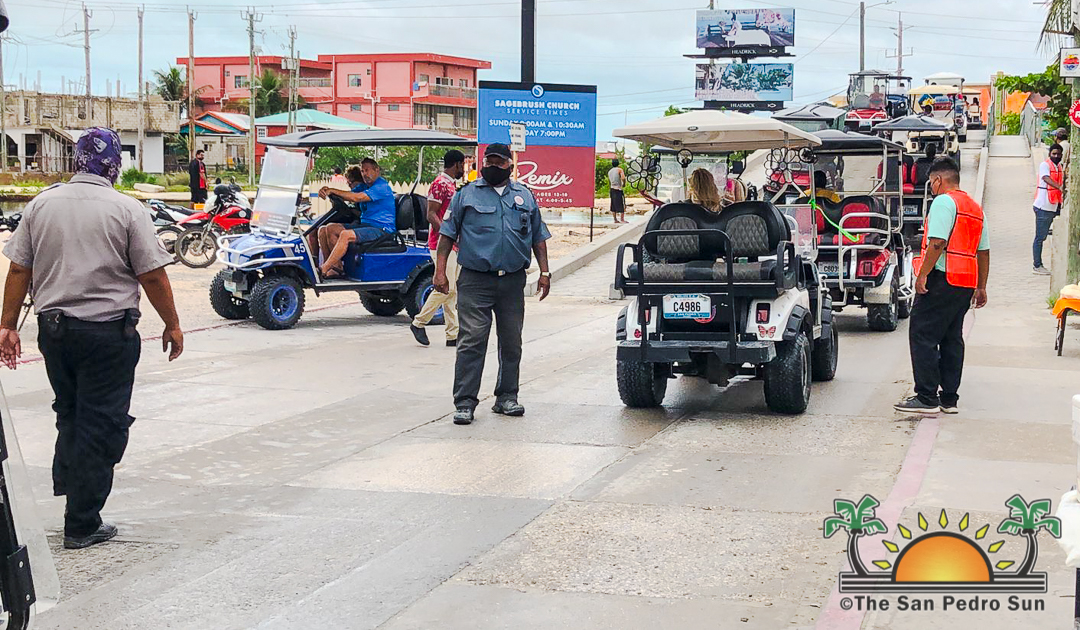 At the booth near the foot of the bridge, personnel from the San Pedro Traffic Department made sure those needing to pay to cross the bridge had pre-paid passes or paid onsite. According to officers onsite, many motorists did not have their pre-paid passes and had to wait at the bridge for their tickets from the toll booth. This caused long lines as golf carts, pick-up trucks, and large vehicles with construction material waited to cross the bridge connecting San Pedro Town with north Ambergris Caye. Toll fees can be paid when accessing the structure, or a monthly pass can be purchased, which is more economical. The San Pedro Town Council (SPTC) advises the public to acquire their pre-paid passes to avoid delays when crossing the bridge. These tickets/passes can be purchased at the traffic department at the SPTC anytime between 8AM-5PM Monday through Friday.