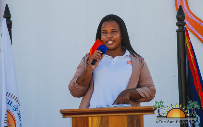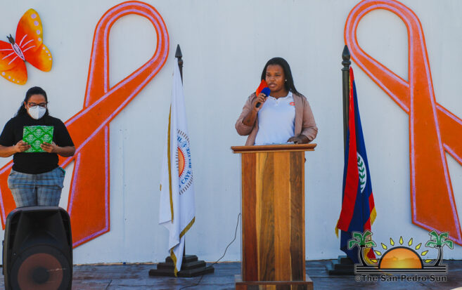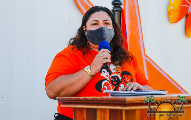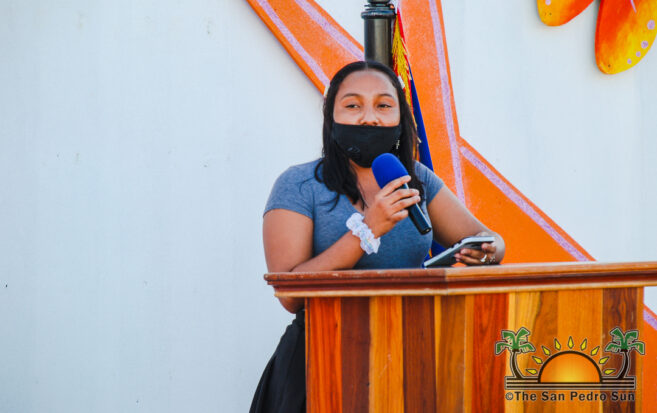 NWC’s officer Kristina Romero delivered remarks encouraging islanders and Belizeans across the country to join forces to end gender-based violence. Recent statistics have recorded an increase in the abuse and murder of women by their partners. It is a problem that, as a country, needs to be immediately addressed.