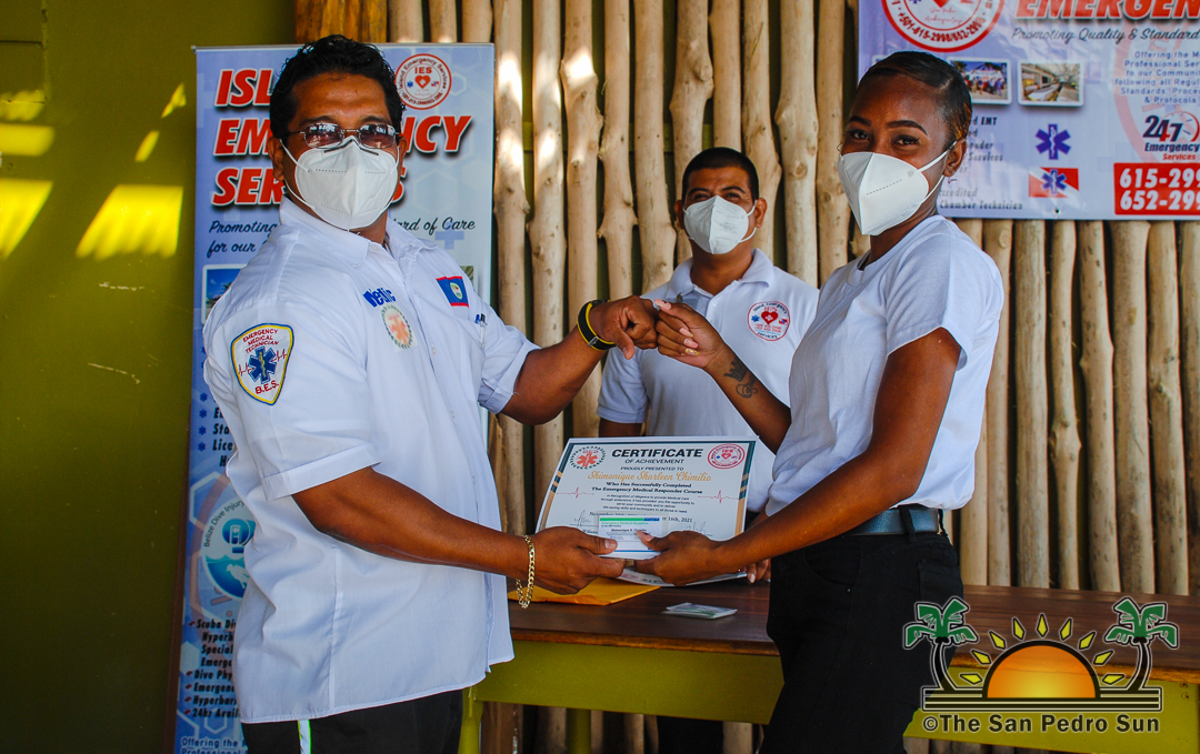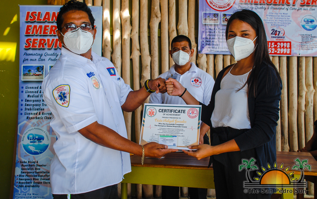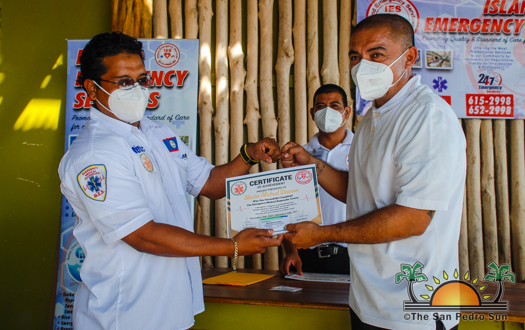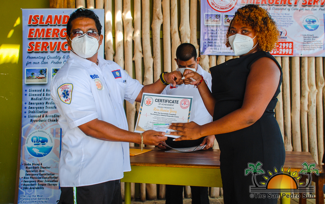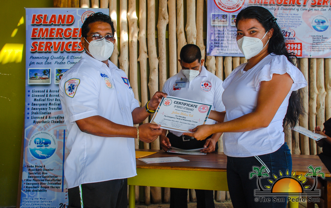 The certification ceremony, considered the first-ever on the island, started at 10AM with representatives from the San Pedro Police Formation, fire department, health department, San Pedro Town Council, family members, and friends of the course’s participants, including former Area Representative Manuel Heredia Jr.