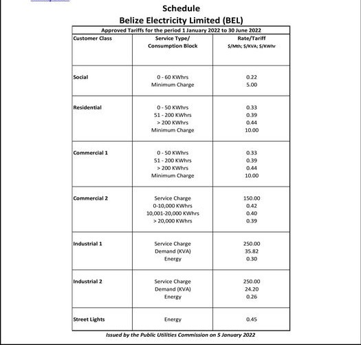 The cost of electricity will increase this month through June of this year. In an official note issued on Wednesday, January 5th, the Public Utilities Commission (PUC) announced that the Mean Electricity Rate or MER would be adjusted from $0.39.9 to $0.41.5 cents per kilowatt-hour. The increase was requested by Belize Electricity Limited (BEL) on December 10, 2021, reporting that it had paid more for power by the end of last year and is projecting to pay more in the first months of 2022. Many customers on the island are not happy with the announced increase. Even the PUC weighed in on the matter, accusing BEL of flouting the law, buying power at a higher rate from other sources, and expecting the consumers to pay the bill.