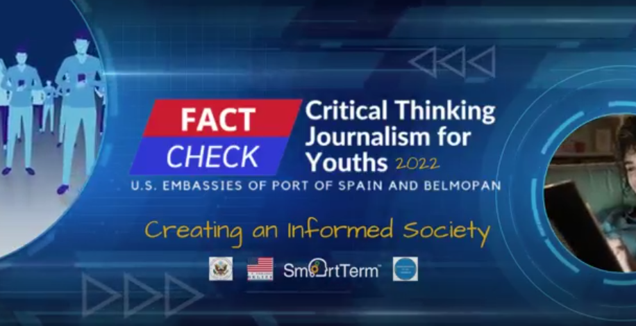 In a virtual ceremony held on Wednesday, March 9th, the U.S. Embassies in Belize and Trinidad and Tobago jointly launched an innovative program called “Fact Check: Critical Thinking Journalism for Youths,” which provides media literacy training for budding writers. Implementing partners SmartTerm Education Technologies Ltd and the Media Institute of the Caribbean will engage 50 youth participants from Belize and Trinidad and Tobago in a two-week, virtual training facilitated by regional experts in journalism and education.