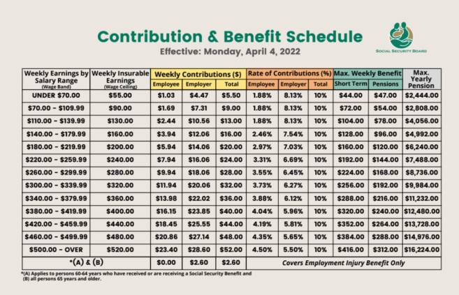 The scheduled increase in Social Security contributions goes into effect on Monday, April 4th, translating to a rise from 9% to 10% and raising the insurable wage ceiling from $480 to $520. This upcoming change increases the maximum cash benefit of $416 weekly for short-term benefits and $312 weekly or $16,224 yearly for pensions.