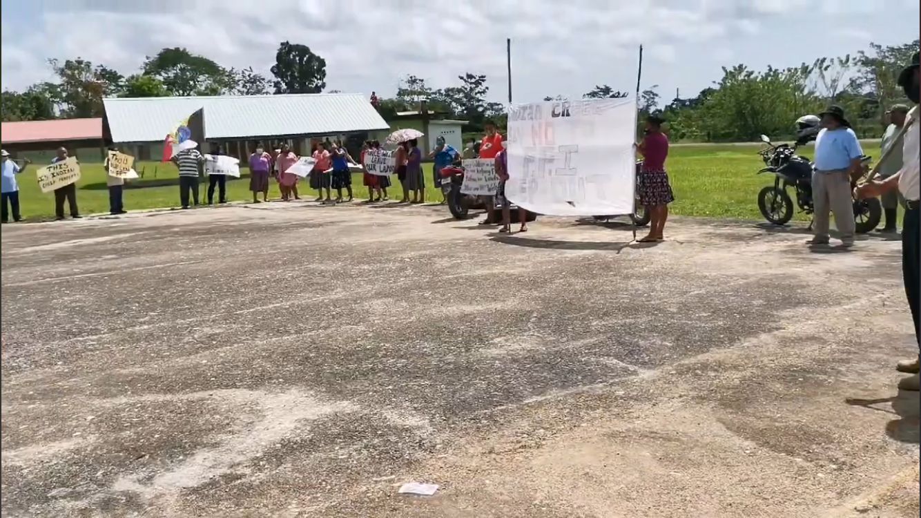 To send a message and show their dissatisfaction with the proposed royal visit to their village, on Friday, March 18th, a group of the villagers (Q’eqchi Maya) marched around Indian Creek with placards showing their dissatisfaction with the visit from the royals. Donisio Shol referred to the move as colonialism and disrespectful when no one in the village was consulted of such a visit. He said that the community leaders were just asked to prepare the football field because a dignitary was going to arrive in a helicopter. “If they had informed the village, they would not be protesting. The problem started with the lack of acknowledgment of the leaders in the village,” said Shol.