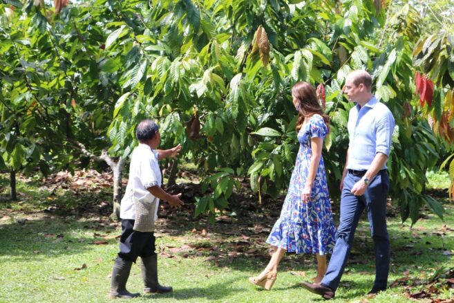 The first on their itinerary was visiting a cacao farm, where the royals indulged in their love of chocolate. Prince William and Kate were shown around the farm and learned the process of making chocolate. Kate engaged in grinding cacao beans using a traditional mano and metate stone tool.