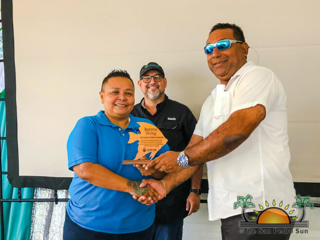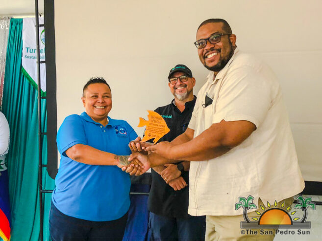 Before the event wrapped up, several stakeholders were recognized with awards. The awardees include The Aggressor, Fisheries Department, Turneffe Island Resort, Ramon’s Diving at Ramon’s Village Resort, Blackbird Caye Resort, Sir Hakim-Belize Dive Haven, Frenchies Diving Services, the Belize Coast Guard, University of Belize, Belize Port Authority, Blue Finance, Ministry of the Blue Economy and Civil Aviation, Beverly Wade, and Turneffe Flats. The awards ceremony also included the donation of $3,000 to TASA from the Belize Tourism Board.