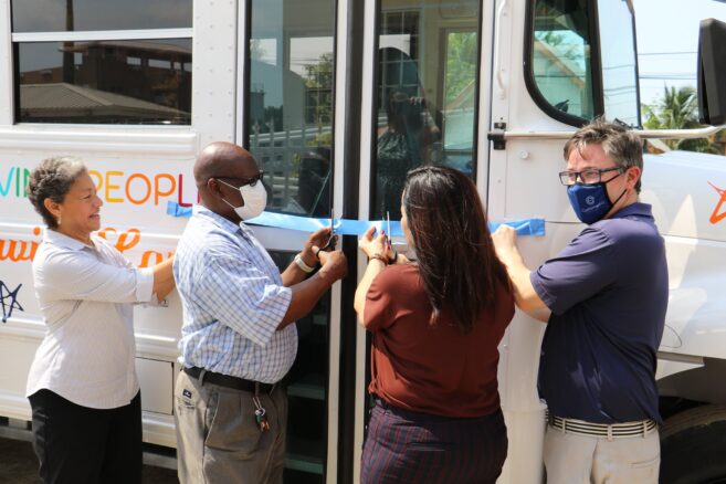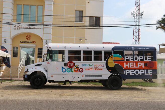 On Wednesday, April 6th the Minister of Human Development, Families & Indigenous Peoples’ Affairs, the Honorable Dolores Balderamos Garcia received a disability-accessible bus donated by Customer HD. This donation was realized through the efforts of Mr. Jonathan Keane, representative of Customer HD, and Mr. Marshall Nunez, Disability Desk Coordinator, Women’s Department.