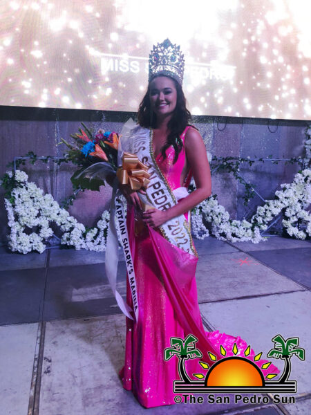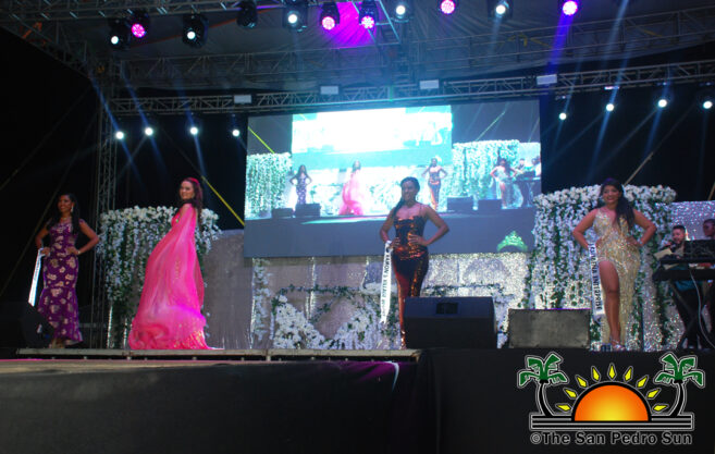 The pageant organized by The San Pedro Town Council saw a full house with hundreds of islanders supporting the event. Shortly after 8PM, hosts Gerry Badillo and Doreth Pascacio invited Deputy Mayor Adaly Ayuso to the stage. She welcomed everyone to the pageant, and after that, Badillo and Pascacio continued with the show. The four candidates followed, with the reigning Miss San Pedro 2021-2022 Grace Brown, and introduced themselves. The contestants then gave the stage to the San Pedro Dance Academy, which entertained the crowd with dance performances.