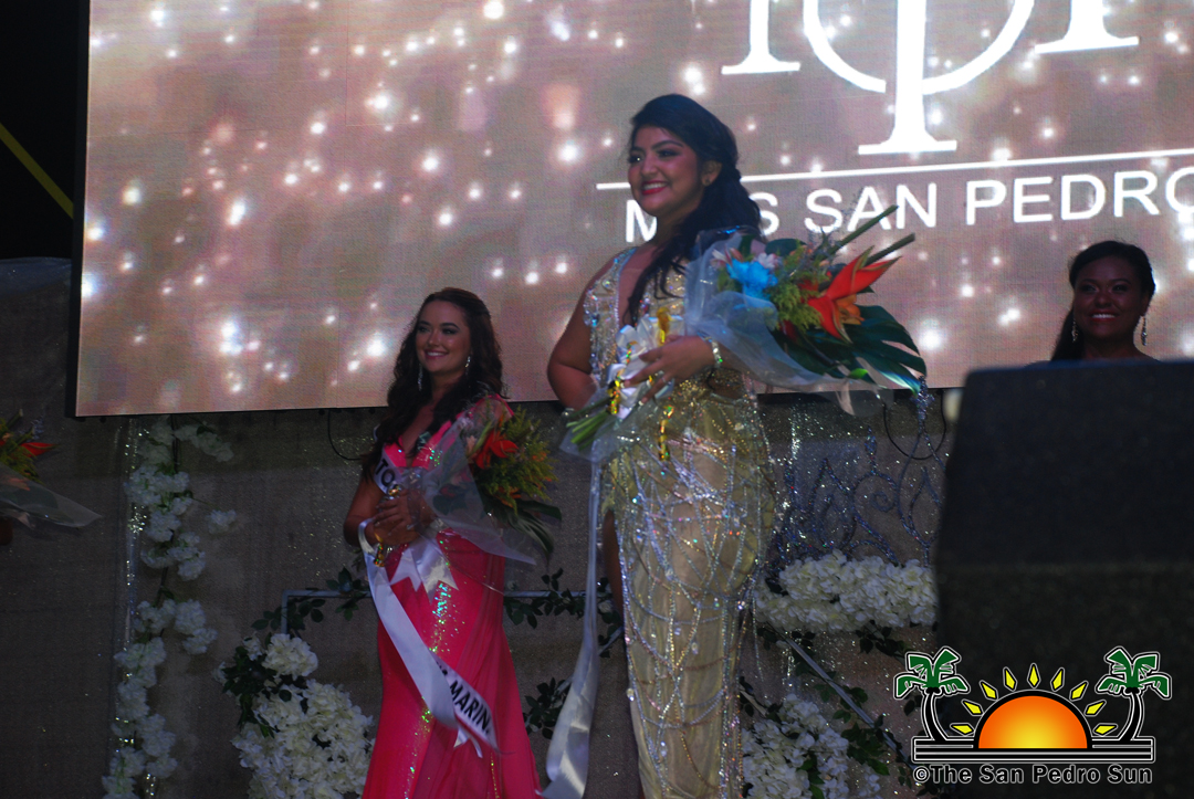 Before announcing the winner, Miss Congeniality, Miss Photogenic, and First-Runner prizes were issued. Guerra received the award for Miss Congeniality, while Edgar was recognized as Miss Photogenic. The hosts then announced the First Runner Up, who would take over the reign if the winner could not carry on with the task. This prize went to Rivero, who stepped up to the front of the stage to accept this recognition. Faith Edgar was then declared the new Miss San Pedro. An emotional Edgar was sashed by Deputy Mayor Ayuso, presented with a bouquet, and outgoing Miss San Pedro Brown placed a crown on her head.