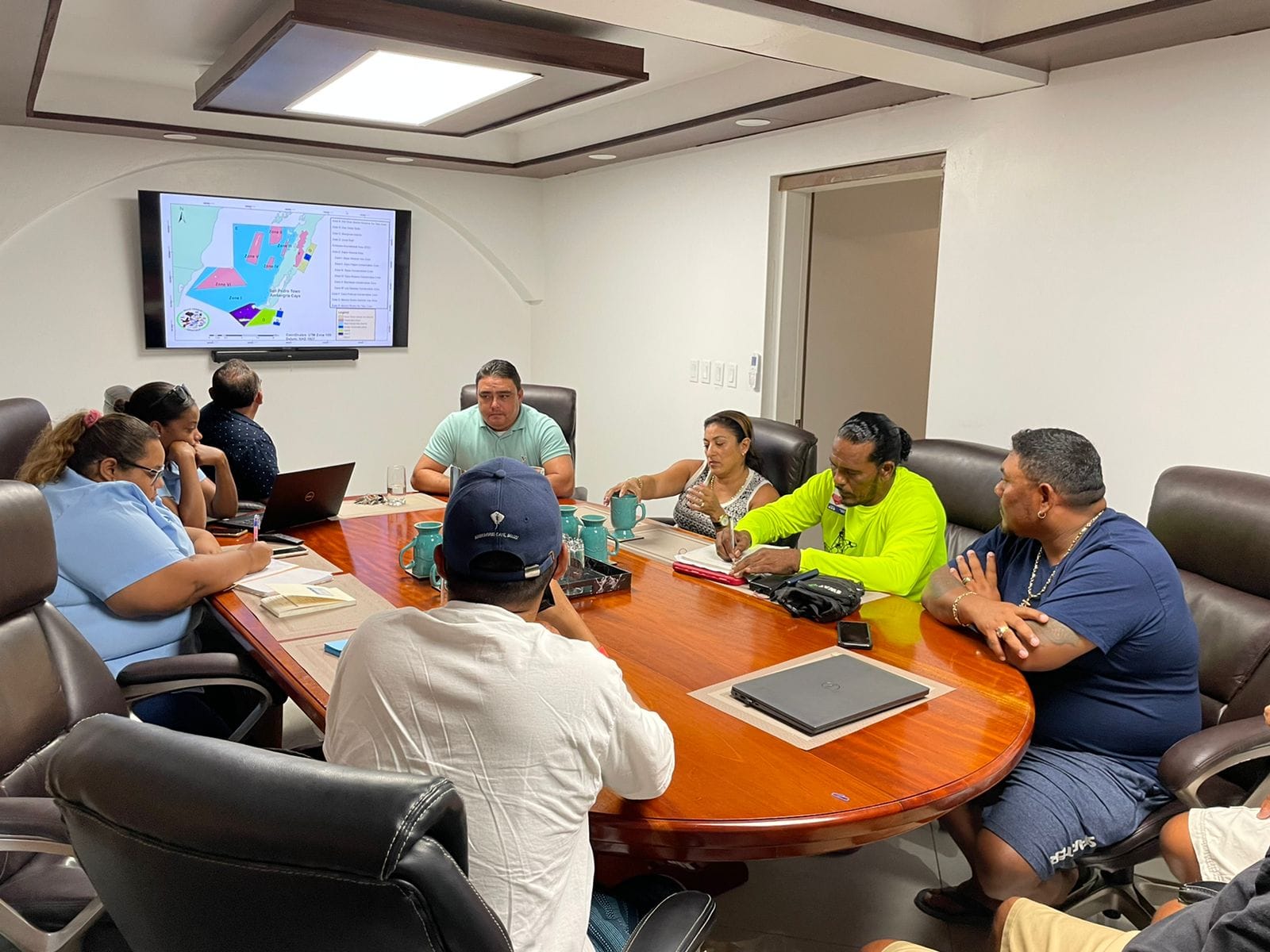 On Thursday, July 7th, representatives of the Hol Chan Marine Reserve and Area Representative Honourable Andre Perez held a stakeholder engagement with the presidents of the San Pedro Tour Operators Association, San Pedro Tourist Guide Association, and the Ambergris Caye Fishing Guide Association. The associations had requested the meeting to seek mutual collaboration and more representation within the operations of the marine reserve.