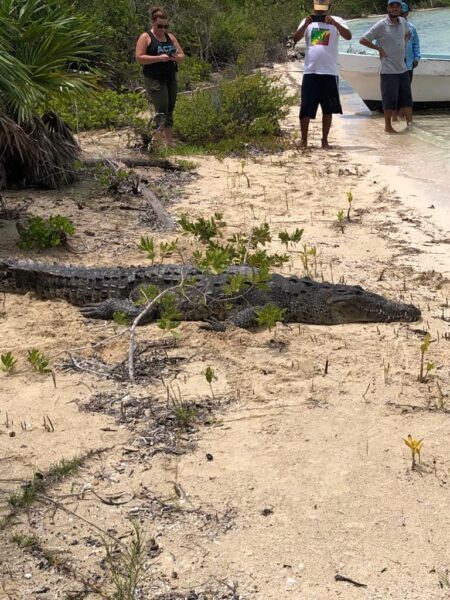 According to witnesses in Caye Caulker, the crocodile was spotted near a guest house. Caye Caulker residents Richard Gill and Amado Watson reportedly tackled the animal and were able to subdue it. They contacted ACES Wild Rescue on Ambergris Caye, who contacted the Caye Caulker Marine Reserve and the Hol Chan Marine Reserve. Members of the Fisheries Department, and Hol Chan then transported the crocodile off Caye Caulker for relocation.
