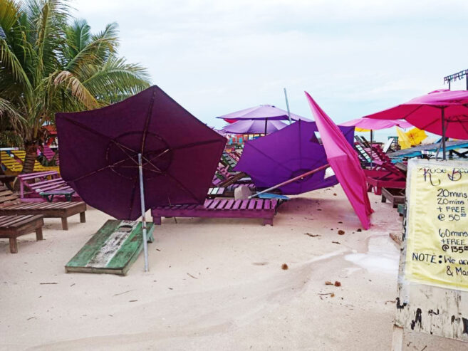 The storm’s aftermath saw trees falling on golf carts and fences, docks, businesses downtown, and even Secret Beach saw their property disturbed by the strong winds. The heavy rain also flooded many side streets. The National Meteorological Service of Belize had forecasted the bad weather; however, no one anticipated it to be so severe.