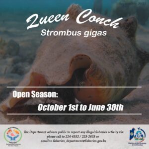 The fisheries department issued a reminder regarding the regulations controlling the fishing and possession of the Queen Conch. According to the Department, the Fisheries Regulation, which relates to Queen Conch, states the following: