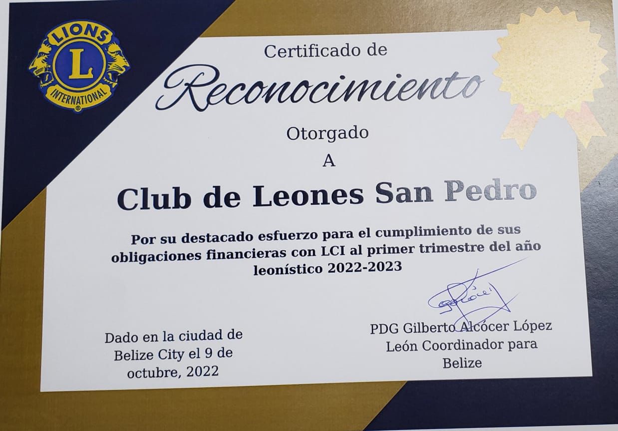 We commend the San Pedro Lions Club for their fruitful efforts and congratulate Lion Graniel on his prestigious award.