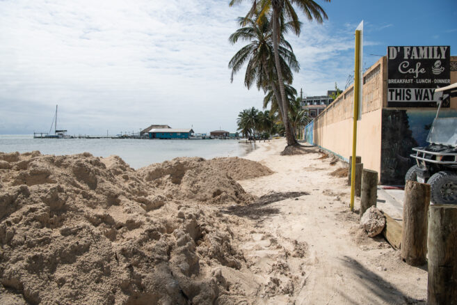 Currently, the project focuses on a demonstration site in front of the San Pedro High School along the Boca del Rio beach strip. This area needed immediate attention as it was rapidly eroding. On October 20th, the project began and involved dropping several loads of sand at the demonstration site. As part of the experiment, the sand piles were left to observe and understand how the shoreline’s sediments move and where they go. According to the San Pedro Town Council (SPTC) team conducting the project, the ideal beach reclamation project will create beach areas along the coastline, eliminating any obstacles that can disturb the movement of sediments.