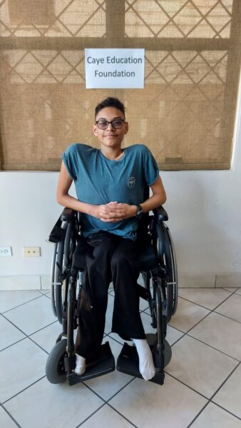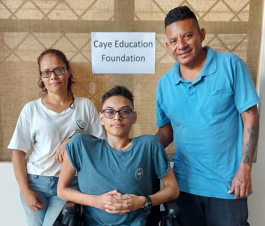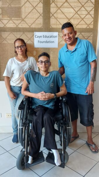 The Caye Education Foundation (CEF) in San Pedro, Ambergris Caye, is dedicated to assisting underprivileged students to achieve a high school education. The Foundation, made up of generous members, is always looking at ways to assist students, and recently they joined efforts to help a bright young man named Jazwell Moguel with a custom-built wheelchair. Moguel will now be able to move around better, be more independent, and even return to in-class learning.