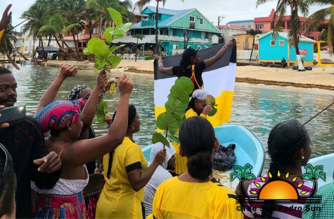 Despite the inclement weather, Garifuna Settlement Day was celebrated in San Pedro Town on Saturday, November 19th, with the traditional Yurumein re-enactment of the arrival of the Garifuna people to Belize in 1832, a parade, mass, and cultural day. The annual public and bank holiday were celebrated under the theme ‘Вun, Аmürü Nu Наgаbürіbеі Gаrіnаgu; Аwаnѕеrаmеmе Wаmá Lаu,’ which means ‘I for you, You for me is the Garifuna Way: Let us Continue to Move Forward.’