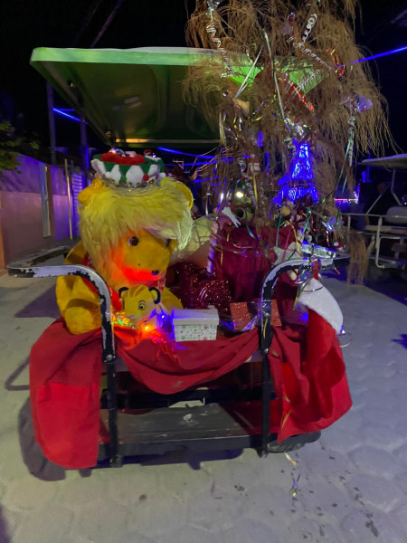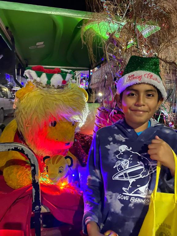 Accompanying the Lions was the island’s band Rompe Raja singing classic Christmas carols, and along the route, they distributed candies and apples to both children and adults. Many families came out of their homes, waved, thanked the Lions for the treats, and even danced and sang with Rompe Raja. Even people in restaurants took a pause from their dinner to greet the Lions and share the Christmas spirit.