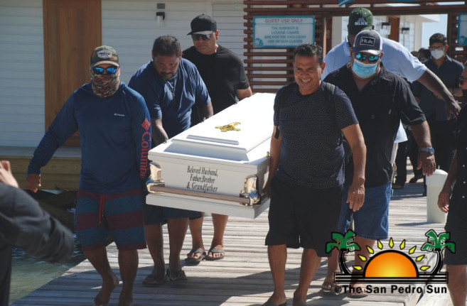 The funeral services on Wednesday saw the casket carrying Nuñez’ body arriving via boat shortly after 10AM. Family members, including Mayor Gualberto ‘Wally’ Nuñez, met the boat. The casket was then transported via vehicle with the SPHS marching band escorting the motorcade to the catholic church through Barrier Reef Drive. They made a short stop in front of the San Pedro Town Council building, where staff and other residents paid their respects. The Belizean flag was lowered to half-mast. Afterward, the casket was taken to the church where Father Eduardo Montemayor was waiting to start the services. He was later laid to rest.