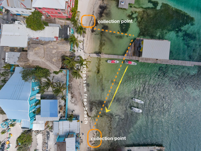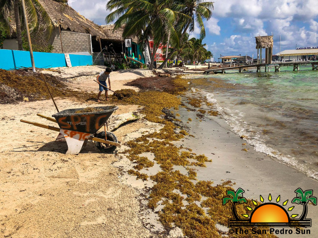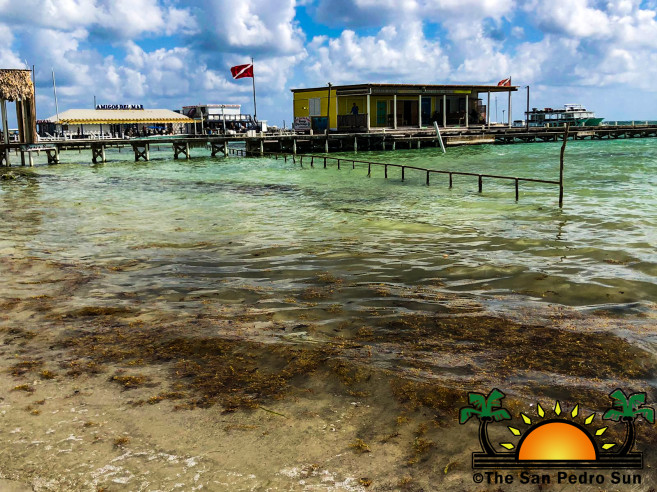 With the change in weather and the windy days associated with this time of the year, San Pedro, Ambergris Caye, and other parts of the country are beginning to experience the constant influx of Sargassum seaweed. The San Pedro Town Council (SPTC) has started working with experts to find ways to keep the downtown beaches free of the brown seaweed. A temporary Sargassum barrier has been installed between the Mayan Princess Hotel beach and the municipal dock near Central Park. This mechanism is to facilitate the removal of Sargassum.