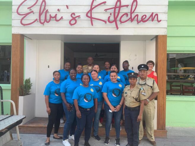 On Wednesday, March 22nd, female officers from the San Pedro Police Formation were hosted at the iconic Elvi’s Kitchen restaurant. In the company of the senior officers of the island police station, the officers wore purple t-shirts and were treated to lunch at one of San Pedro’s best restaurants.