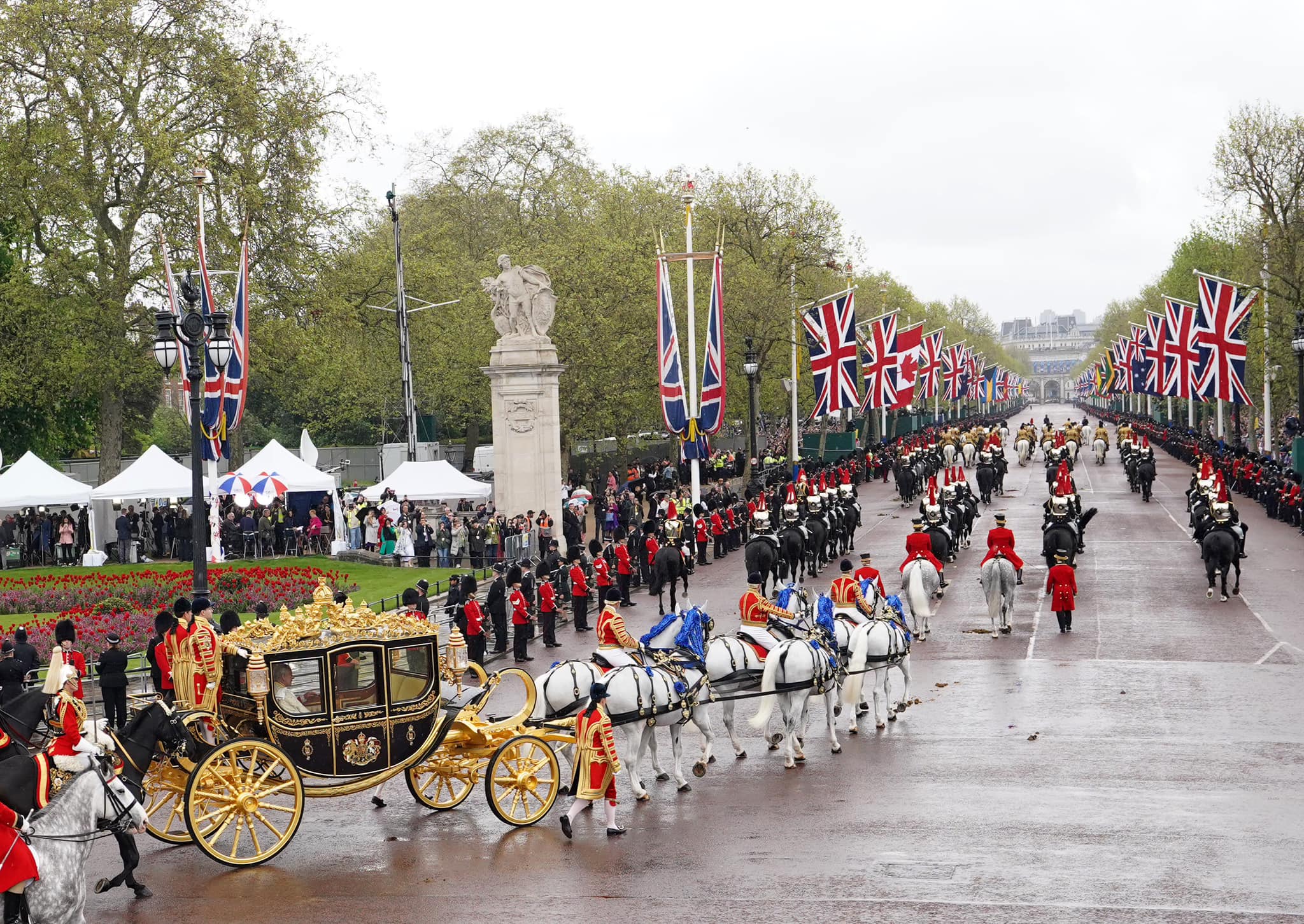 The last traditional event was held in 1953 for the coronation of the late Queen Elizabeth II, which saw thousands lined up the streets of the royal route from Westminster Abbey to Buckingham Palace. Many camped overnight to secure the best spots to see the procession and the new king. Besides the spectacular and sumptuous parade involving thousands of military personnel, there were the sounds of trumpets, gun salutes, and loud cheering from the crowds.