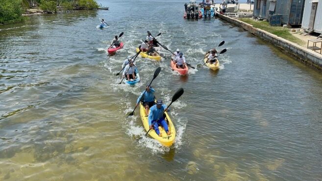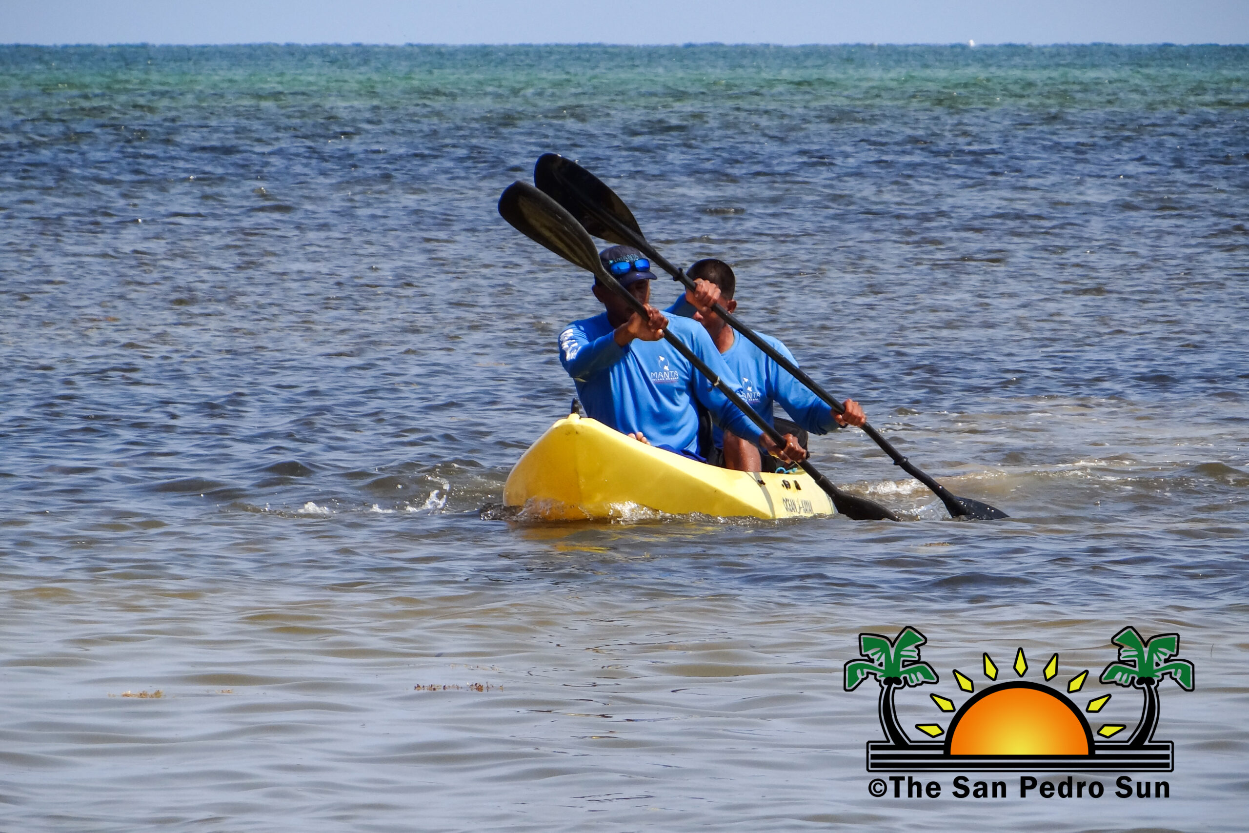 The fair kicked off at 10AM with a kayak race featuring eight teams. Kayakers were challenged to paddle around the southern half of Ambergris Caye starting from the Boca del Rio channel on the west side, around the island’s lagoon, and returning to the beach park from the eastern side.