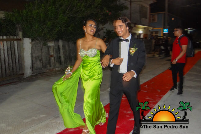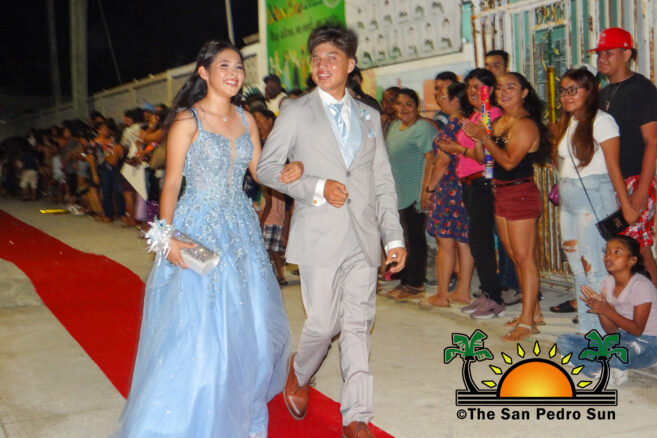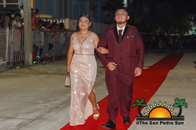 Prom in San Pedro Town is quite the social event, and the glitz and glamour always draws a large crowd of onlookers to the venue. This year was no different, with islanders lining up on either side of the red carpet, eagerly waiting for the beautifully dressed students. Whether solo, with friends, or with a date, the students arrived to much fanfare, strutting down the red carpet. Stunning ball gowns, elegant shifts and suits and tuxedos lit up the night to the delight of onlookers. A few students went all out to make grand entrances, complete with elaborate choreography, confetti, and even fireworks. A trio of judges was in the crowd looking at every detail of the attendees’ attire and entrance; at the end of the night an award would be given for Best Entrance.