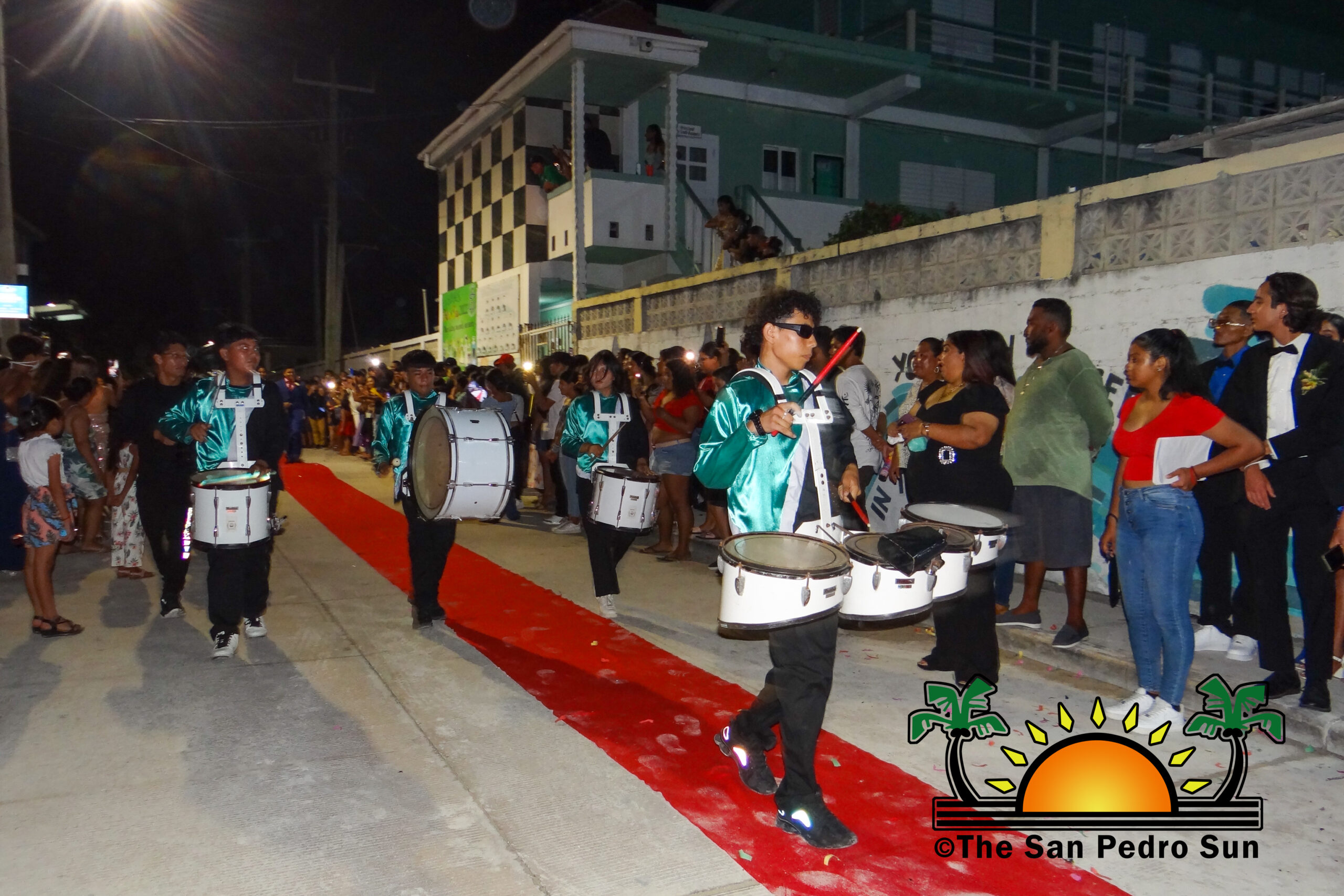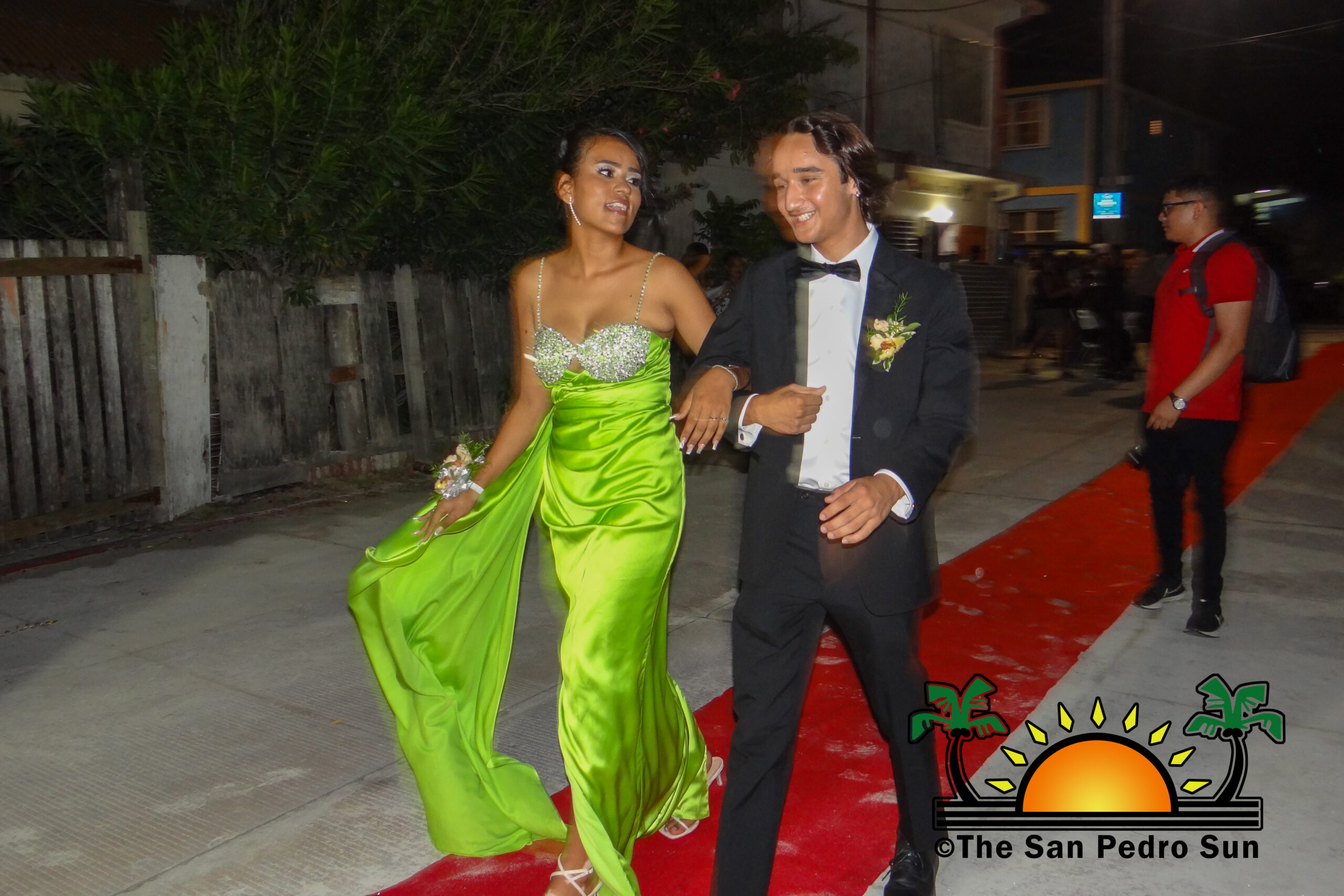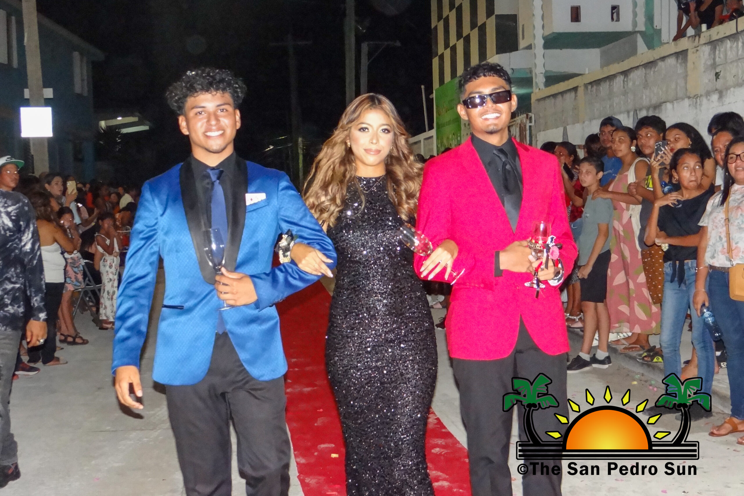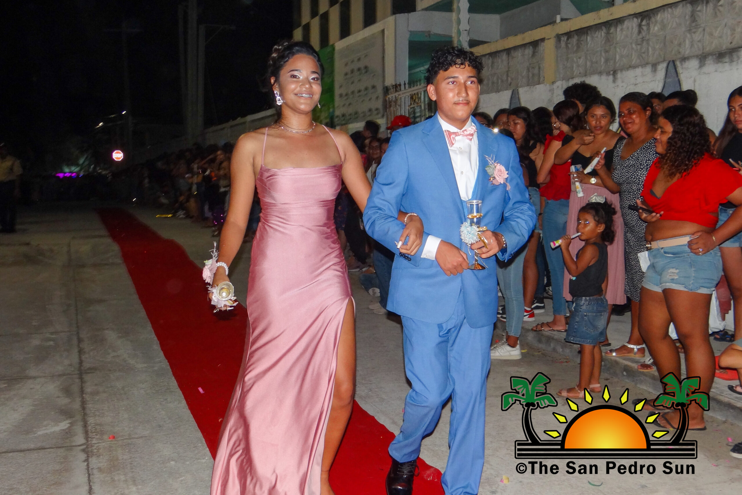 Prom in San Pedro Town is quite the social event, and the glitz and glamour always draws a large crowd of onlookers to the venue. This year was no different, with islanders lining up on either side of the red carpet, eagerly waiting for the beautifully dressed students. Whether solo, with friends, or with a date, the students arrived to much fanfare, strutting down the red carpet. Stunning ball gowns, elegant shifts and suits and tuxedos lit up the night to the delight of onlookers. A few students went all out to make grand entrances, complete with elaborate choreography, confetti, and even fireworks. A trio of judges was in the crowd looking at every detail of the attendees’ attire and entrance; at the end of the night an award would be given for Best Entrance.