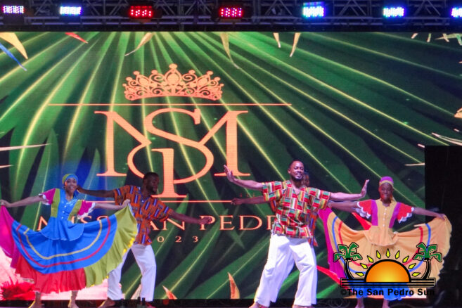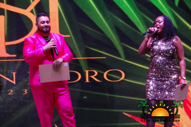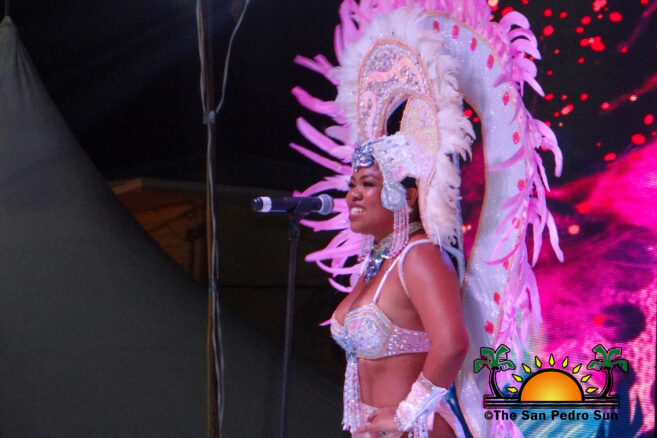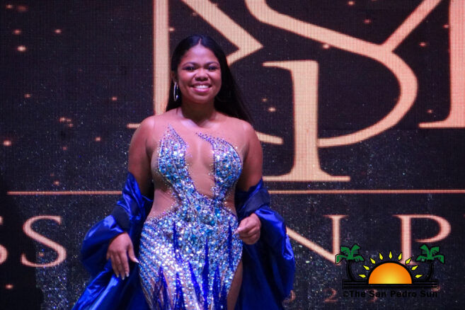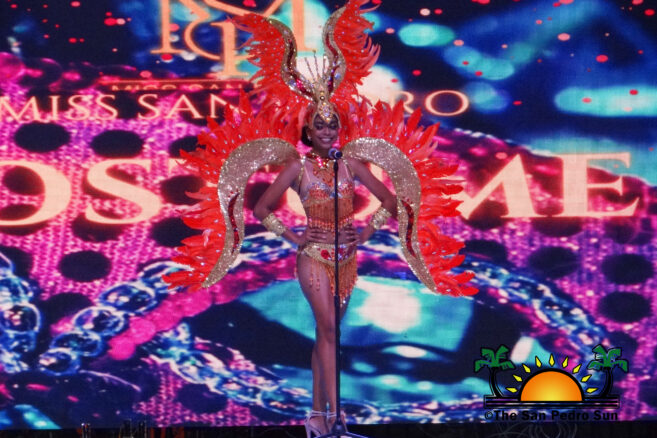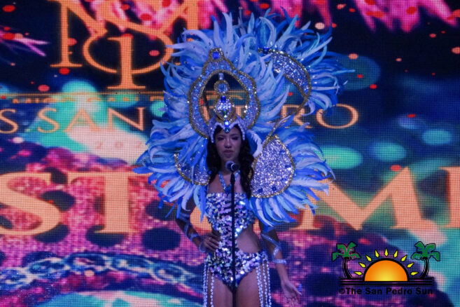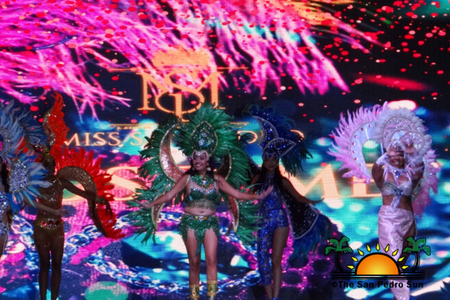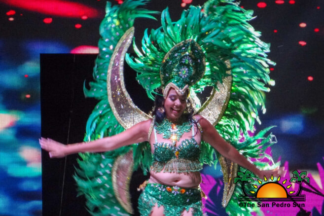 Gerry Badillo and Doreth Pascacio introduced the pageant segments, starting with the costume competition. Each candidate showcased elaborate outfits representing Belize’s natural resources, such as conch and lobster. After this segment, the girls gave the stage to the Belize Dance Company.