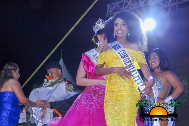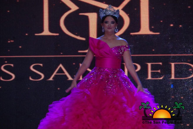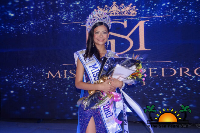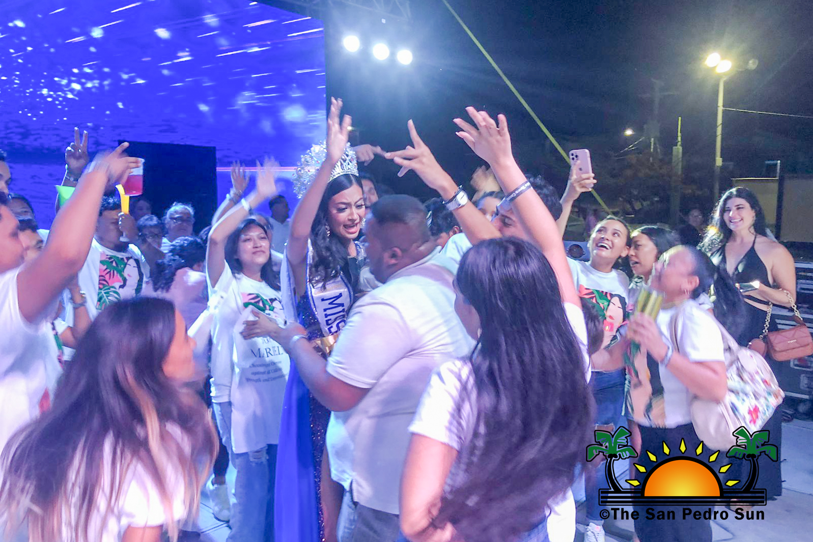 Vivian Noralez was awarded first runner-up and received a prize. She would take over as the queen if the winner could not continue the task.  Afterward, and to drum rolls, the title Miss San Pedro 2023-2024 was awarded to Mariel Calderon. An emotional Calderon was sashed by Councillor Adaly Ayuso, presented with a bouquet, and outgoing Miss San Pedro Edgar placed the crown on her head. Calderon then stepped to the front of the stage as San Pedro’s new beauty ambassador. Her support team and family then went up the stage to celebrate with her.