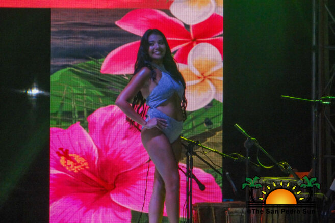 On Friday, June 30th, the entertainment section of the celebration was held at the Honourable Louis Sylvestre Sporting Arena. Islanders packed the venue to witness the crowning of their new queen at the Miss San Pedro Pageant. The show started with all the aspiring queens stepping onto the stage for an opening dance. The contestants included Vivian Noralez, sponsored by Ramon’s Village Resort, Herla Ortiz, sponsored by Castillo’s Hardware, Ileny Aguilar, sponsored by RE/MAX, Gabby Lopez, sponsored by Suya Tours and Mariel Calderon, sponsored by Caribeña Enterprises.