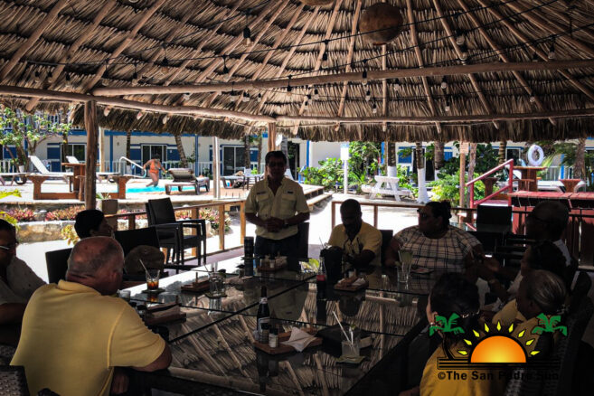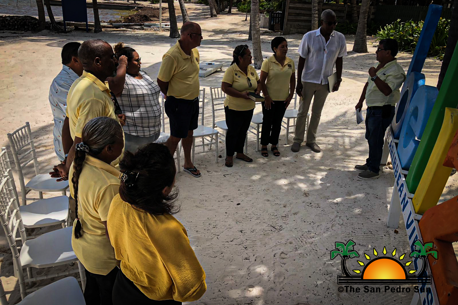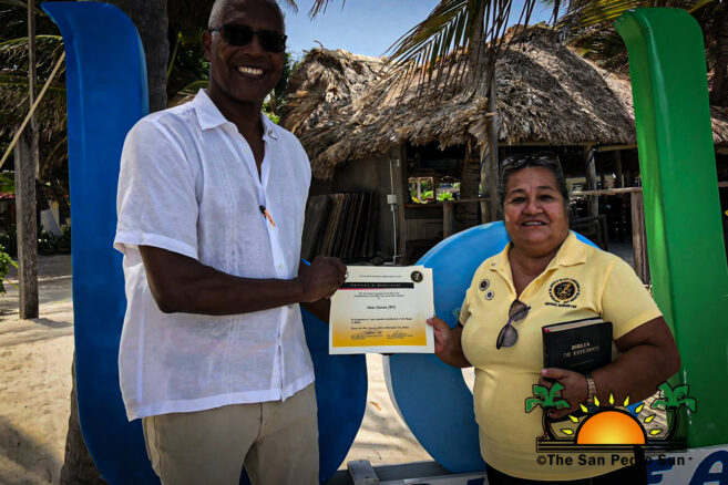 The swearing-in ceremony started shortly after 1PM on the beach. Madrid addressed the JPs, and each member accepted their new role in the island’s JP chapter. The long-time president of the San Pedro chapter, Clive Welsh, passed on the responsibility of the post to Nai Duran. Welsh presented Duran with a certificate of appreciation, wished President Duran all the best, and said he would be available to assist the new committee with any help needed.