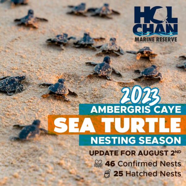 Hol Chan reminds the public that sea turtles are protected by law. People should keep their distance and give sea turtles space if spotted on the beach. As per law, never touch a nesting turtle or handle the hatchlings. While the far north side of the island attracts beachgoers, during the season, they are reminded to refrain from driving on the beach, if possible, to avoid disturbing the nesting beaches. People are asked to avoid tagged and marked turtle nests and littering the beach area.