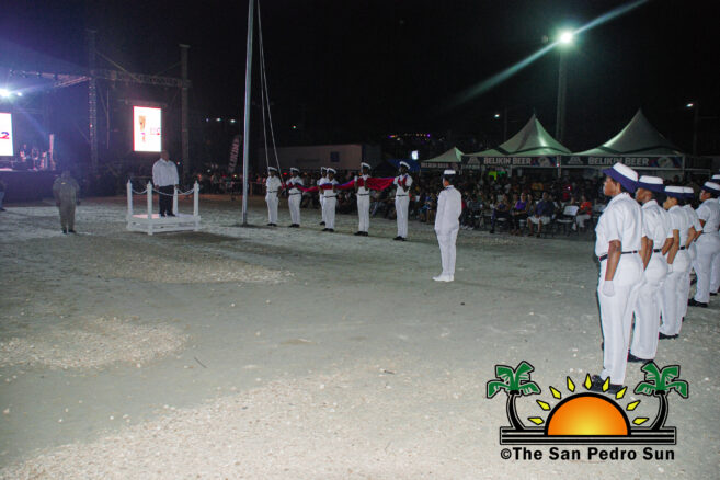 The flag-raising ceremony was next, and the Belize Coast Guard marched into the venue’s field. Mayor Nuñez inspected the guard of honor, and immediately after, the flag-raising ceremony was held, with the singing of the national anthem followed by a 21-gun salute.