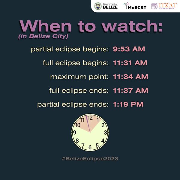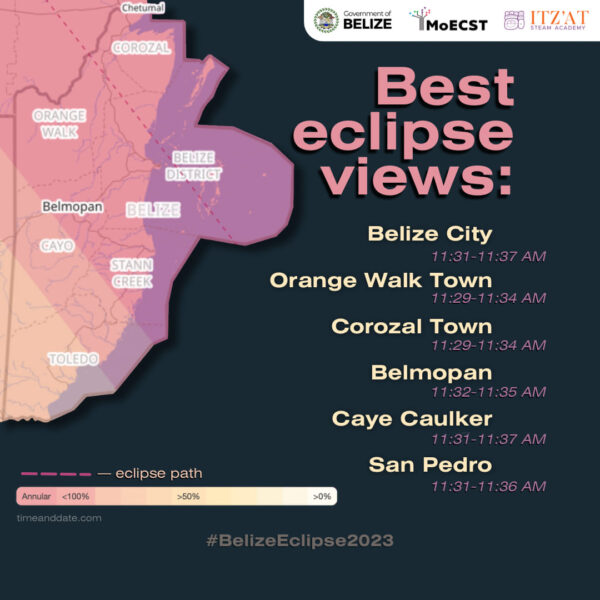 This Saturday, October 14th, an annular solar eclipse will be visible in Belize. The natural phenomenon will begin over areas like San Pedro Ambergris Caye around 10AM, peaking at 11:30AM. The brief event, also known as a ring of fire solar eclipse, will also be visible in parts of the United States of America, Mexico, Central and South America. When enjoying this rare nature show, following safety precautions to avoid eye damage is important.