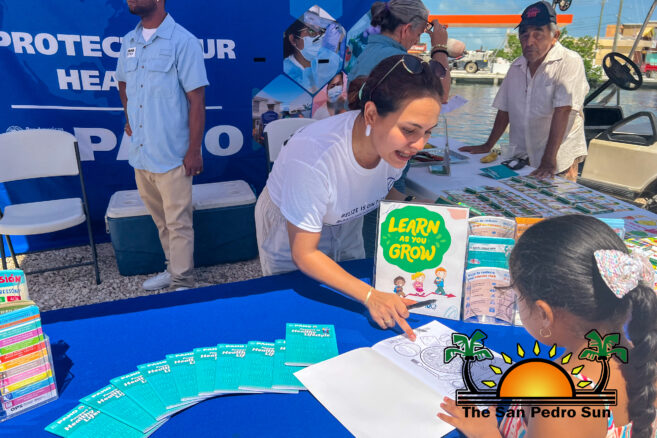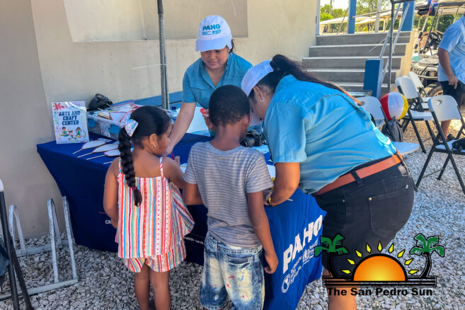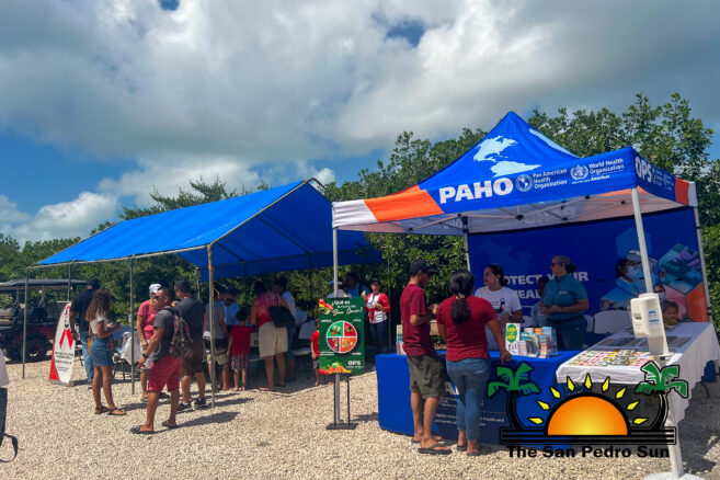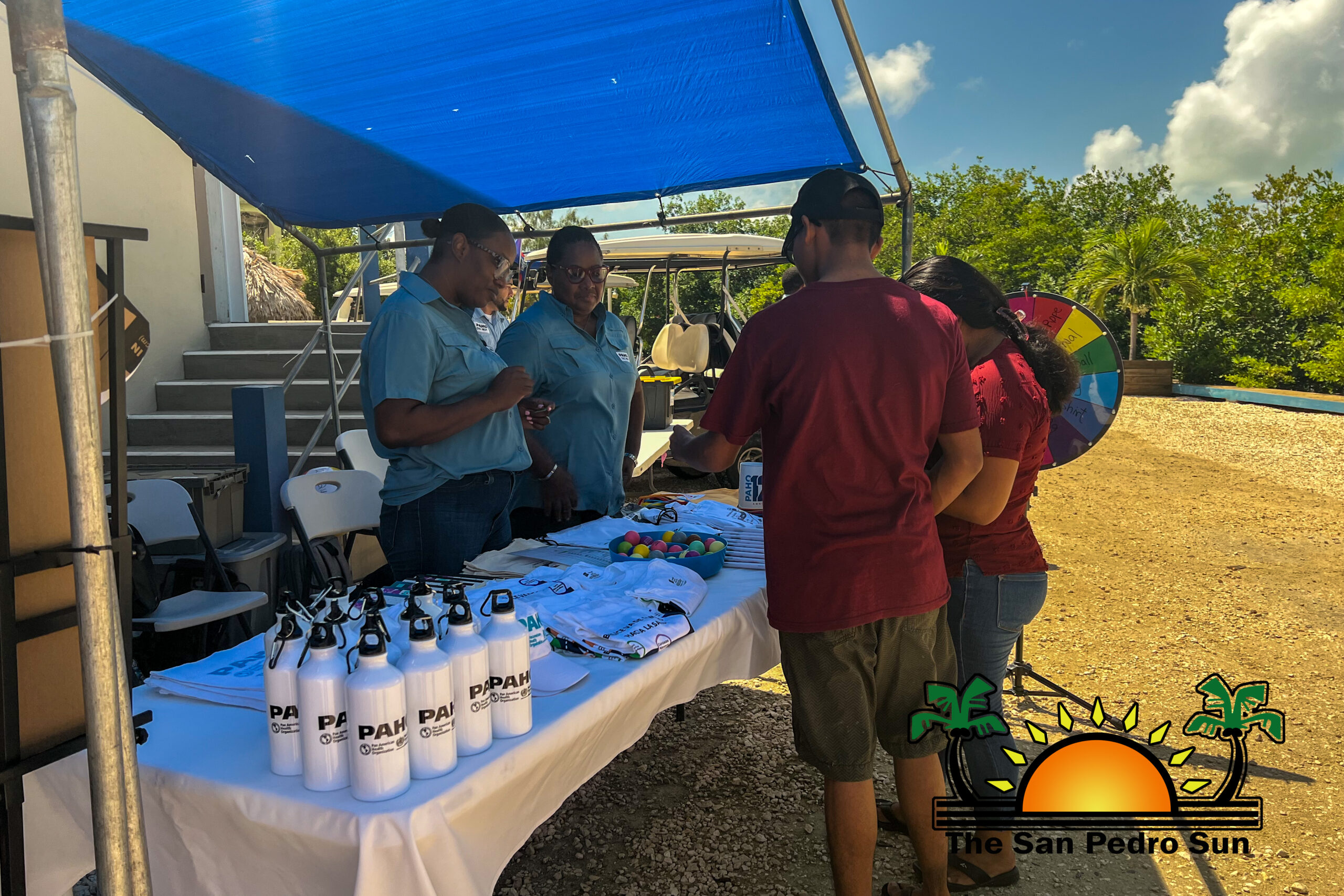The mobile health clinic was open to island residents from 9AM to 2PM. Several booths offered attendees information pamphlets from organizations such as the Pan American Health Organization/World Health Organization, the National AIDS Commission of Belize, and the National Drug Abuse Control Council, as well as fun games for children with prizes for the whole family.